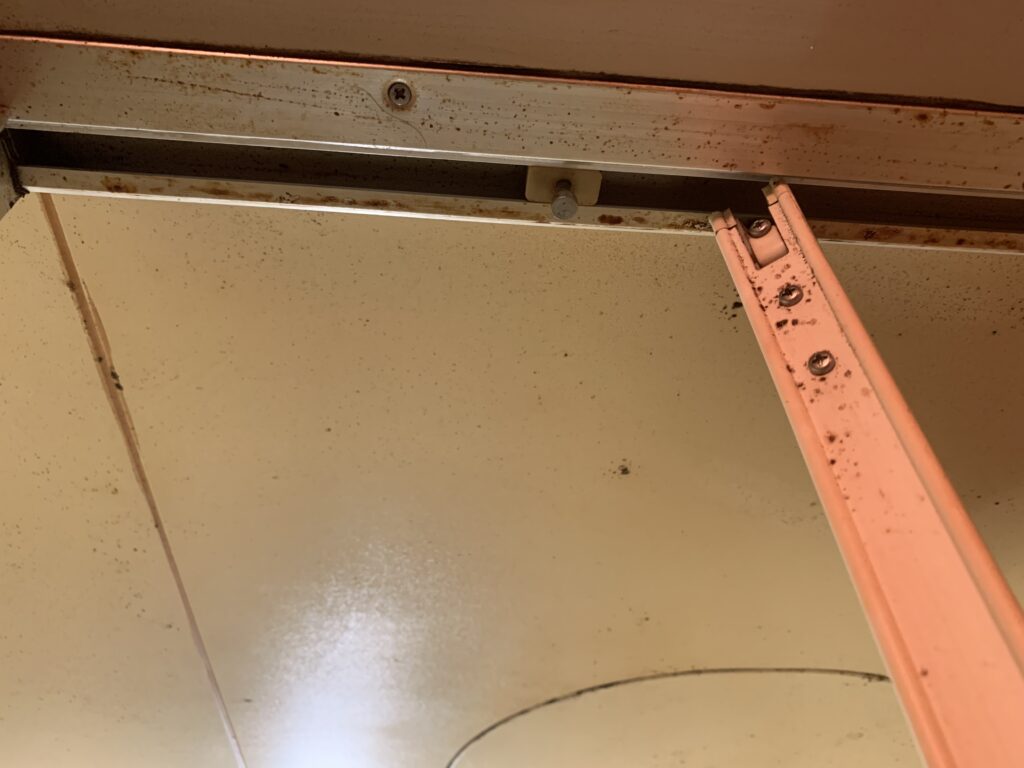 折り戸 送り側の金具が外れてしまい ドアの開閉に支障が出ています。